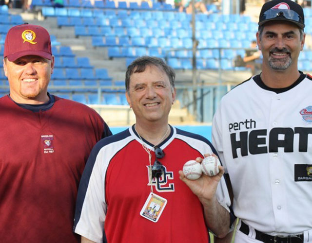 a business. You know even though it’s a business, it’s more like a family as well. I got to keep hitting well. Wherever they put me, I will play as best I can. I just got to keep working. Go well this spring, this season. And then in the offseason again–just keep getting better. Hopefully, it will be a short trip to the Big Leagues. Roberto: Who do you aspire to be like in Major League Baseball? Hayden Beard (interjecting): The Big Dog! (laughter) Corey Adamson: Definitely not like Beardy at all!!! (even more laughter)Former Perth U.S. Consul General Ken Chern (center) with Dave Nilsson (left) and Graeme Lloyd (right).Roberto: How about the MLB players and instructors at the MLB Australian Academy? Corey Adamson: Through Academy and having Dave Nilsson coach and Graeme Lloyd…that was great. Dave Nilsson was a really good coach. He taught me a lot of stuff and to always aim to be an all-star. One year we