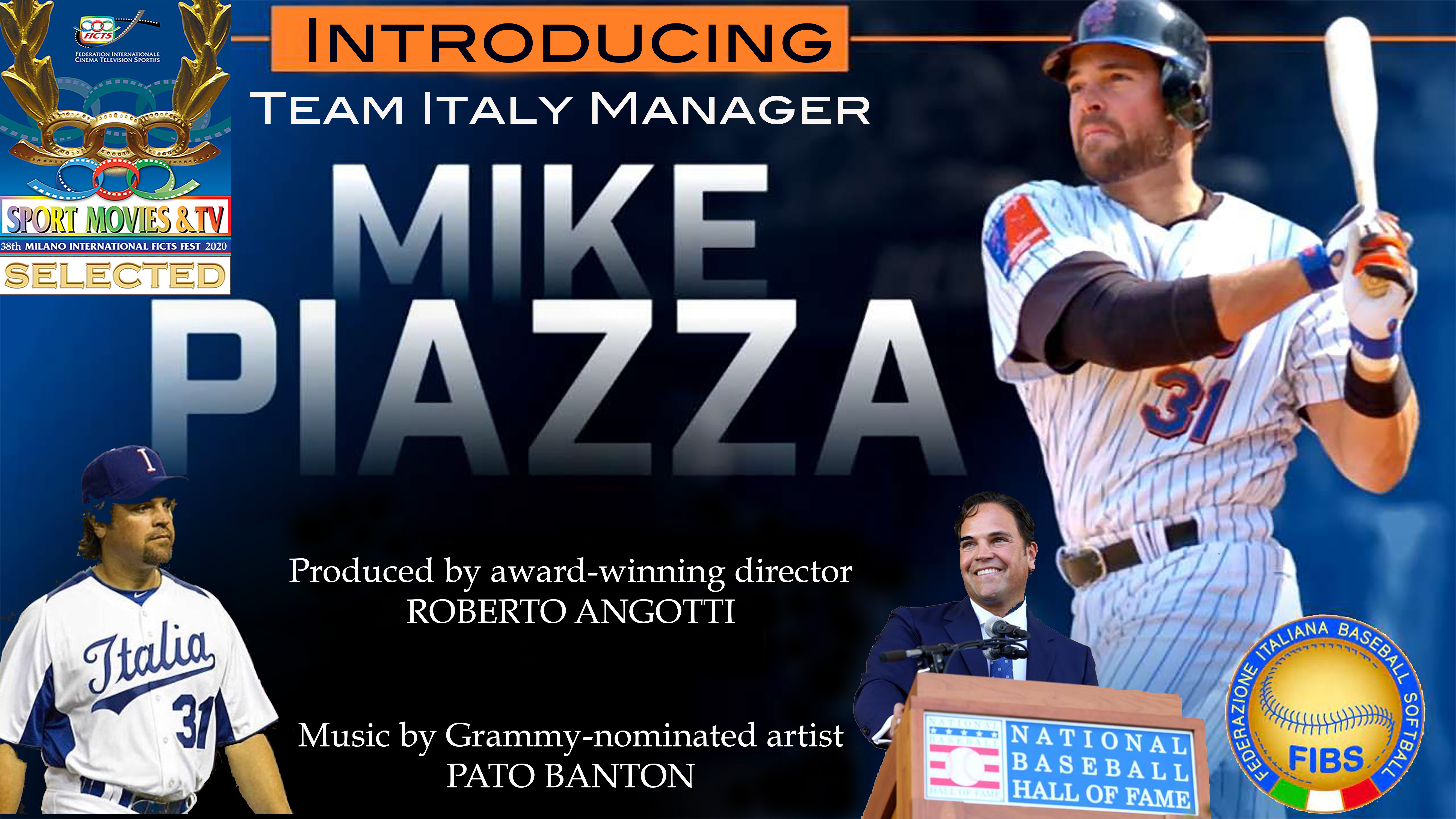 Organized by FICTS (Federation Internationale Cinema Television Sportifs) and recognized by the International Olympic Committee, the world-renowned Sport Movies & TV 2020 Festival has selected Introducing Team Italy Manager Mike Piazza as a finalist in the FICTS Worldwide Championship of Television, Cinema, Sport, Culture and Communication in Milan, Italy from November 7-11, 2020. Director Roberto Angotti returns for his second FICTS Sport Movies & TV World Challenge after his Russo Brothers Italian American Film Forum Award-winning Italian American Baseball Family documentary was selected as a finalist in 2018. The grand final of 20 World FICTS Challenge Festivals spanning five continents, the Sport Movies & TV 2020 Festival will be livestreamed on the ms360.tv website and broadcast live on MS Channel Sky 814. Introducing Team Italy Manager Mike Piazza will be livestreamed Monday, November 9, 2020 at 11:15 am (EST) on both platforms. FICTS promotes the values of sport through images in over 123 affiliated nations and is presided over by Professor Franco Ascani of the Italian Olympic Committee Commission for Culture and Olympic Heritage. Introducing Team Italy Manager Mike Piazza is among the elite productions of the nearly 1,000 submissions from 50 countries in 52 sport disciplines. The FICTS International Jury, made up of ambassadors in the world of cinema, television, media, sport and culture, will deliberate on which productions to select for “Guirlande d’Honneur” (Oscar of Cinema and Sport Television), “Mention d’Honneur” (Honorable Mention), and “Special Awards” for each of the eight categories.